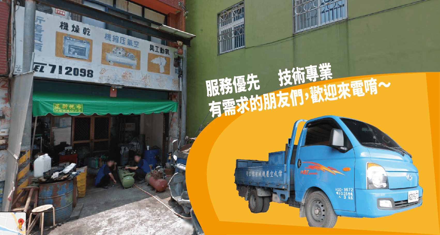偉成空壓機械有限公司,創立於1986年,提供中部與彰化在地服務長達三十多年,歷經第一代傳承,以延續由第二代服務經營,專業維修買賣空氣壓縮機(空壓機)、活塞式空壓機、皮帶式空壓機、直接式空壓機、DC直流式空壓機、箱型靜音式空壓機、無油式空壓機、二段高壓空壓機、螺旋式空壓機及空壓機週邊設備買賣維修!!